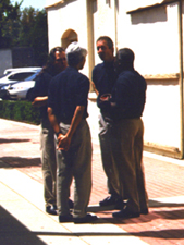 The Quartet relaxing before singing at the LSA Fundraiser at the Riverside Art Gallery in 2005 |