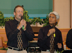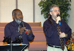 a closeup of Bart (left) and Demi (right) singing at a concert at the Hawthorne SDA Church during the morning service where Dr. Bachiocci was speaking. |