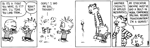 Bill Watterson’s Calvin & Hobbes comic strip really gets at the heart of the connection with God. If the wages of sin really is death, then what SHOULD happen when we sin is we SHOULD cease to exist. WHY? We have cut ourselves off from life (GOD) and we should not live.